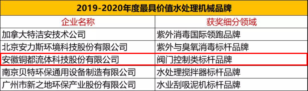 銅都流體榮獲“2019-2020年度最具價(jià)值水處理機(jī)械品牌”