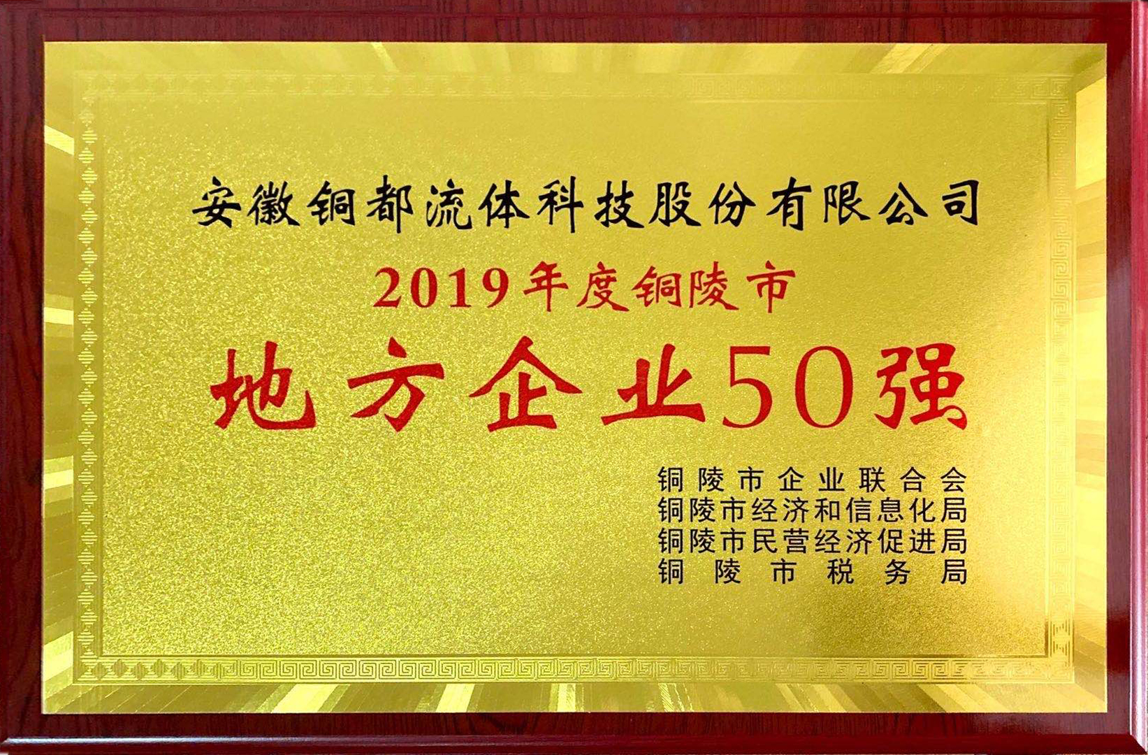 銅陵市發(fā)展民營經(jīng)濟領(lǐng)導小組開展的“2020銅陵市民營企業(yè)50強”評選活動,以企業(yè)2019年度營業(yè)收入為基本標準,銅都流體榮獲2020銅陵市民營企業(yè)50強稱號。