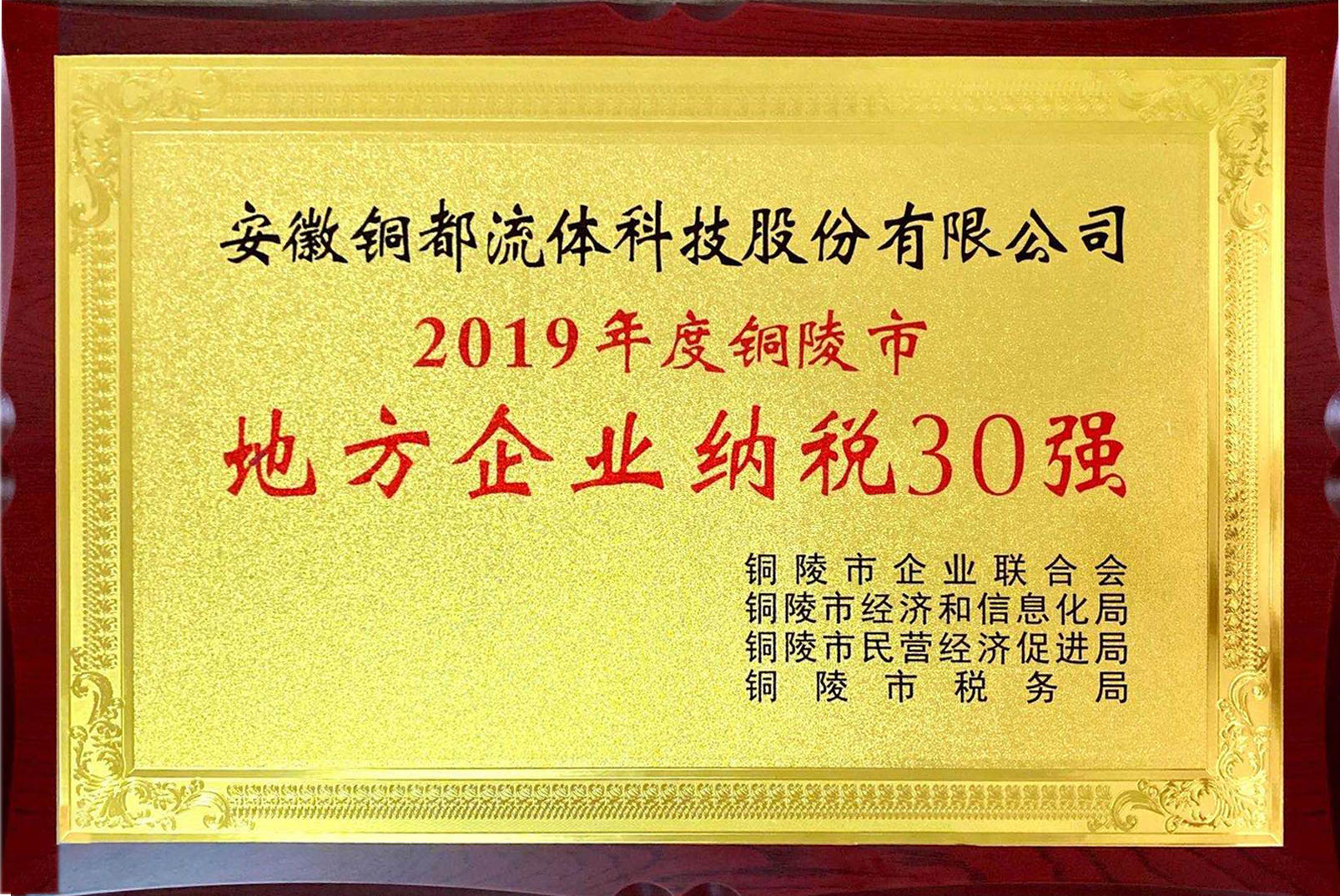 “50強”排序以2019年度地方企業(yè)營業(yè)收入為評選主要標準,“納稅30強”以當年實際納稅數(shù)額高低排序,由高到低綜合確定。銅都流體榜上有名。