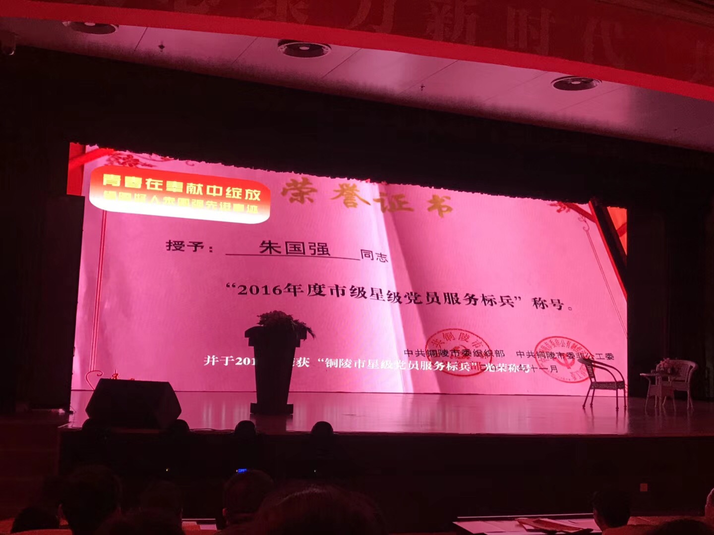 7月30日,銅陵市文明委、文明辦、銅官區(qū)文明辦,在銅官區(qū)會(huì)議中心,聯(lián)合召開(kāi)"銅陵好人"表彰大會(huì),銅都流體員工"銅陵好人"獲得者朱國(guó)強(qiáng)同志受到表彰。公司黨總支號(hào)召全體員工以朱國(guó)強(qiáng)同志為榜樣,獻(xiàn)愛(ài)心做好事,無(wú)私奉獻(xiàn),不忘初心,牢記使命,奮發(fā)拼搏,為銅都流體再創(chuàng)輝煌而努力奮斗!