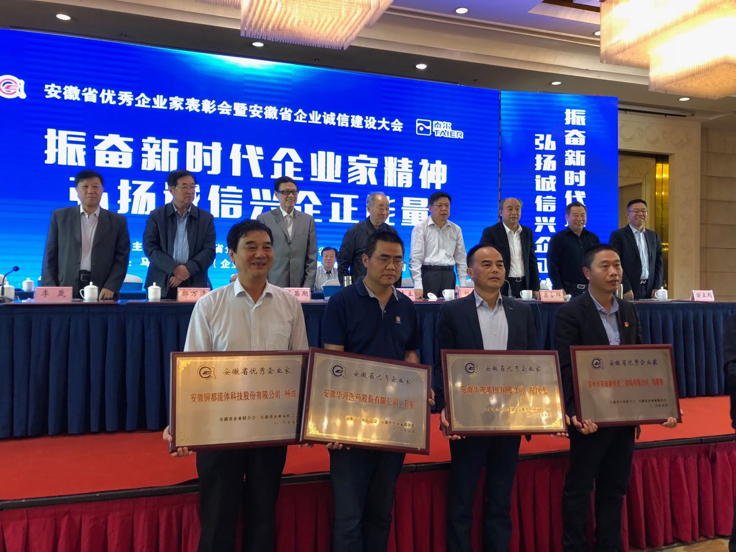 振奮新時(shí)代企業(yè)家精神,弘揚(yáng)誠信興企正能量。公司董事長楊成榮獲"安徽省優(yōu)秀企業(yè)家"榮譽(yù)稱號(hào)。