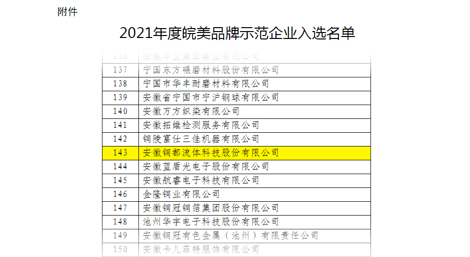 同時,2021年度安徽省企業(yè)技術(shù)中心評價結(jié)果公示,銅都流體省企業(yè)技術(shù)中心再獲優(yōu)秀。
