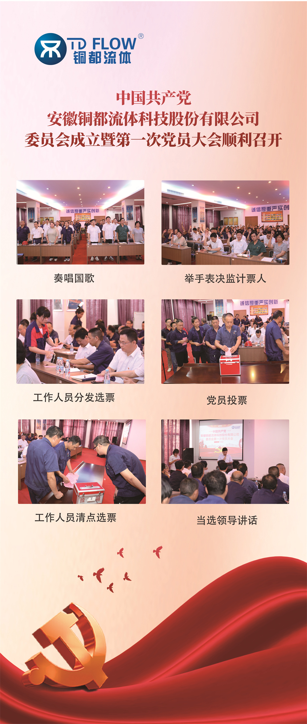 日前,經(jīng)中共銅陵市獅子山高新區(qū)黨工委批準(zhǔn),中國共產(chǎn)黨安徽銅都流體科技股份有限公司委員會正式成立。9月28日,銅都流體黨委召開了一次黨員大會,選舉產(chǎn)生了銅都流體黨委書記、副書記、委員和各支部書記。